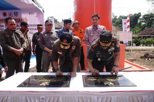 DISKOMINFO INDRAMAYU – Badan Nasional Penanggulangan Bencana (BNPB) RI bersama Pusat Teritorial Angkatan Darat (Pusterad) meresmikan sumur bor sebagai sumber air bersih di Desa Jaya Mulya, Kecamatan Kroya, Kabupaten Indramayu, Kamis (17/8/2025).