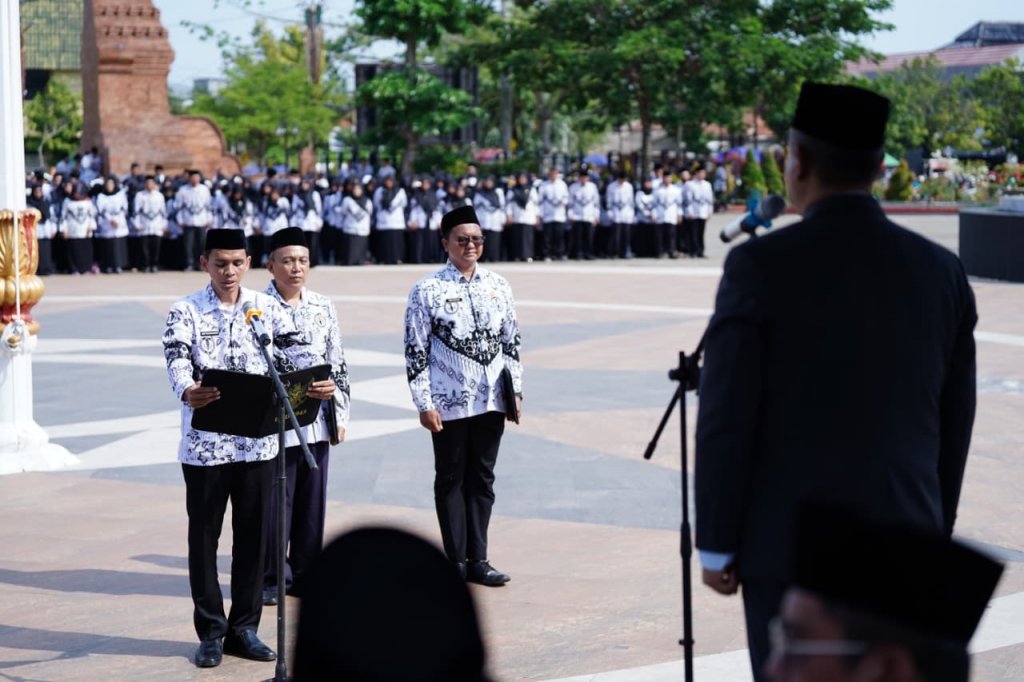 Hal tersebut disampaikan dalam Upacara Peringatan HUT PGRI ke-80 dan Hari Guru Nasional Tahun 2025 Tingkat Kabupaten Indramayu yang bertempat di Alun-Alun Indramayu pada Selasa, (25/11/2025).
