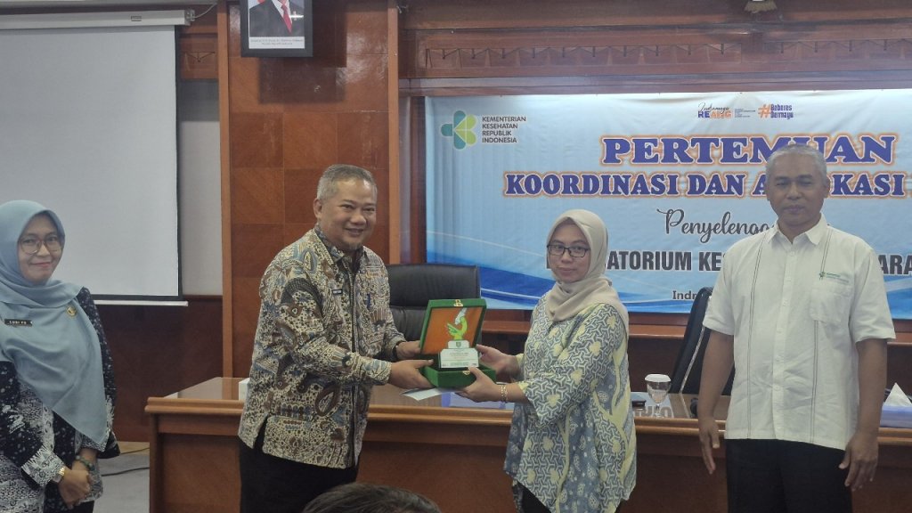 Sebagai bentuk apresiasi atas kontribusi dalam pengembangan Labkesmas, Dinkes Indramayu juga memberikan cinderamata kepada para narasumber, termasuk dr. Weni Muniarti dari Direktorat Tata Kelola Kesehatan Masyarakat Primer Kementerian Kesehatan RI.